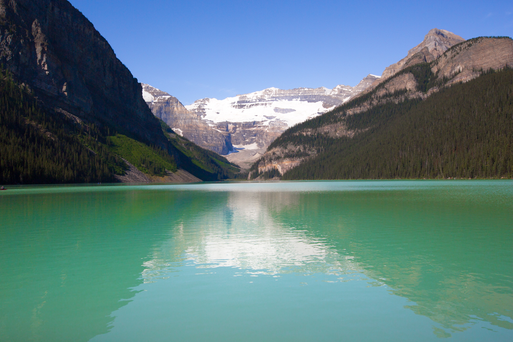 One of my favorite stops was Lake Moraine. It is most serene and bluest lake i've ever seen. Being a glacial lake it gets its color from the mineral deposits that flow into the lake as the snow melts. The area around the lake has several hiking trails, most popular being the Rockpile trail where you hike up a pile of rocks to get a view of the lake from behind the trees. Lake Louise was gorgeous too and had a bright emerald color. Popular hikes in the Lake Louise area is the trail up to Emerald Lake and Lake Agnes tree house.