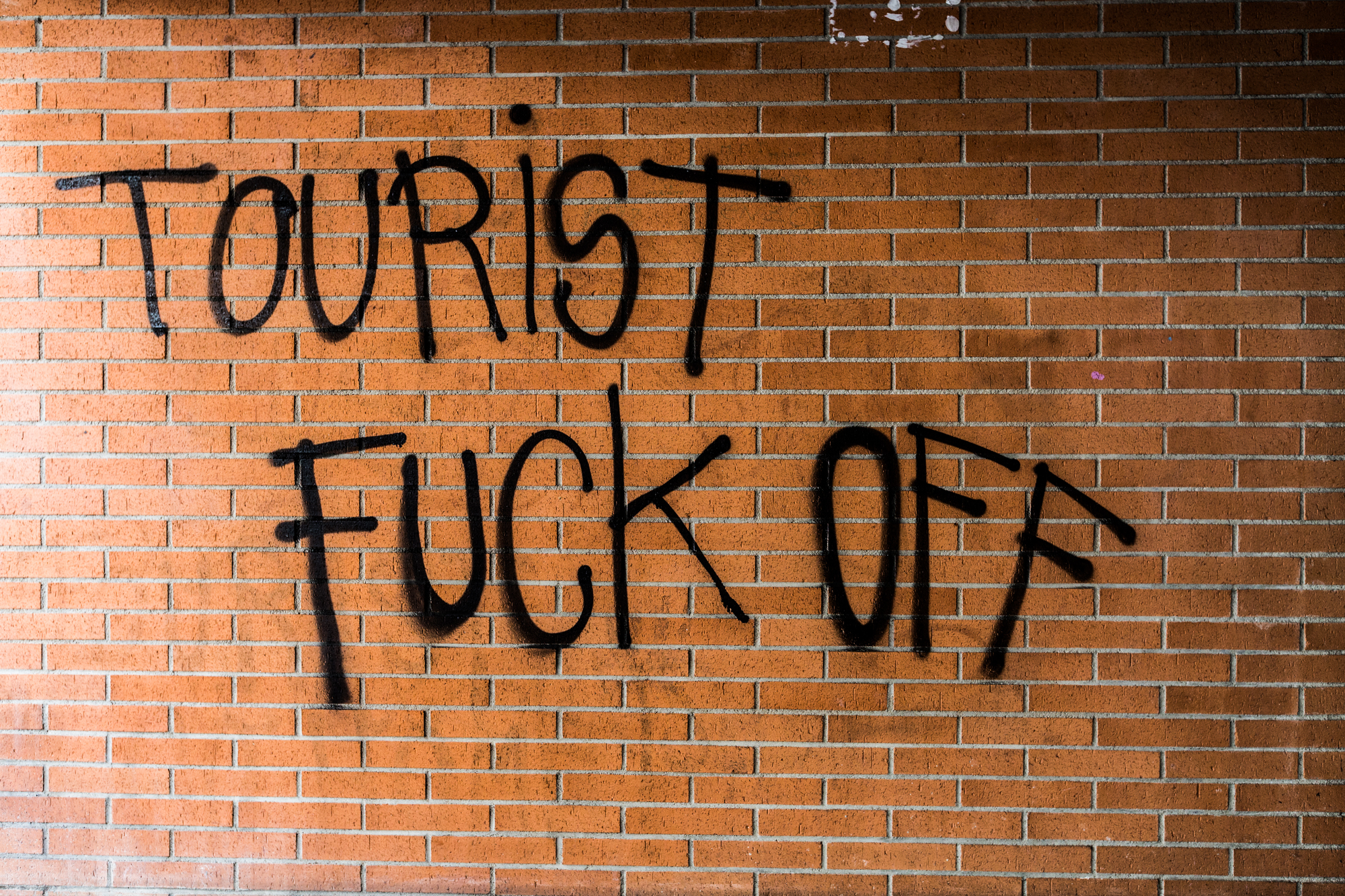 Next stop was Park Guell, again designed by Antoni Gaudi. It is a public park located on Carmel hill. Thank God for the escalators which make the climb to the hill easy. As we walked to the park from the train station we realized that the people in the city are not very happy with tourists. There is graffiti everywhere and sings to the park pointing in the wrong direction.