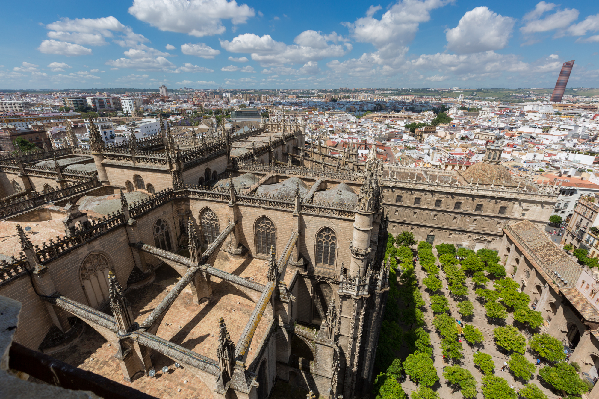 Seville is famous for its Roman Catholic Cathedral. The gothic architecture is breathtaking. Apart from having the distinction of being the third-largest church in the world, the Seville Cathedral is also home to what is believed to be the remains of Christopher Columbus. On Sundays the Cathedral does not open to visitors until 2:30pm. For the most classic view of Seville, you'll want to scale its most famous tower, the Giralda, which was originally built as a minaret in the 1100s. It's an easy 33 floor climb to the top with wide ramps instead of stairs.