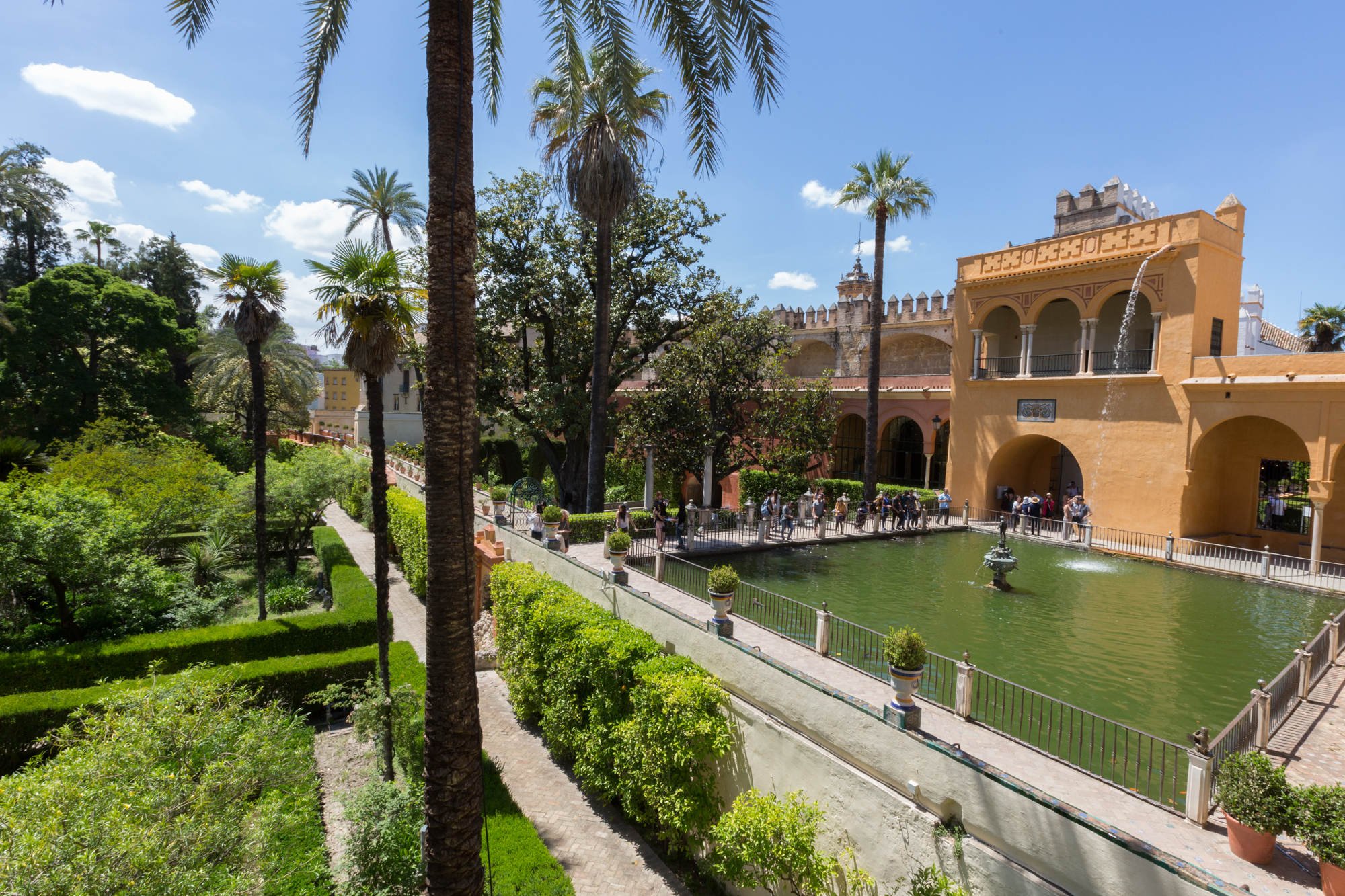 Another great place to visit to see Moorish architecture is the palace of Real Alcazar which is located right next to the cathedral. The courtyards and gardens are beautiful. It's a paradise of Mudejar architecture and tranquil palm tree  and fountain filled gardens. It also gains modern day fame having served as a set for the hit TV series Game of Thrones. Note that you can spend at least a couple hours exploring the complex, so if you need to refuel, there's a cafe in the garden.