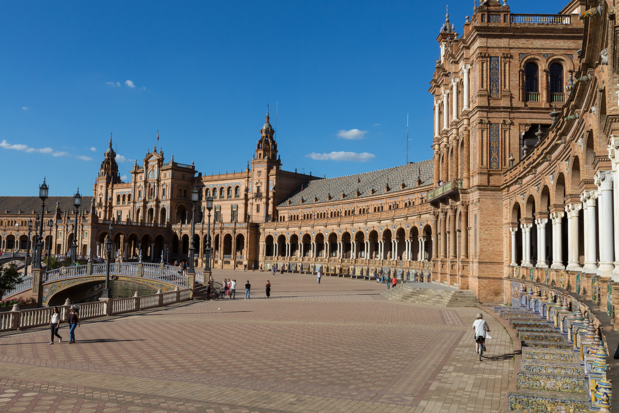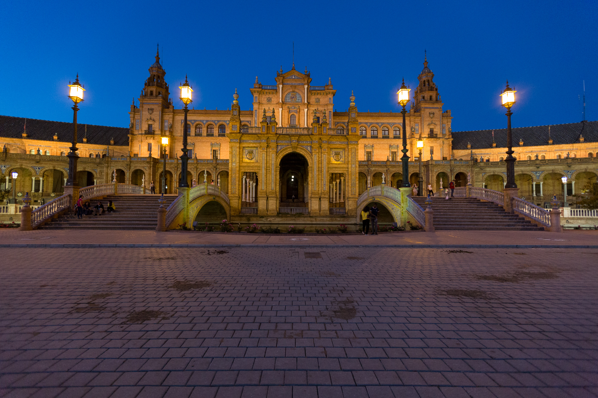 Plaza de Espana was one of my favorite spots which is worth seeing in the daytime and returning at night. It is located in Maria Luisa Park and has a mix of Renaissance and Moorish styles of architecture.The reflection of the south tower in the pool is stunning at blue hour.