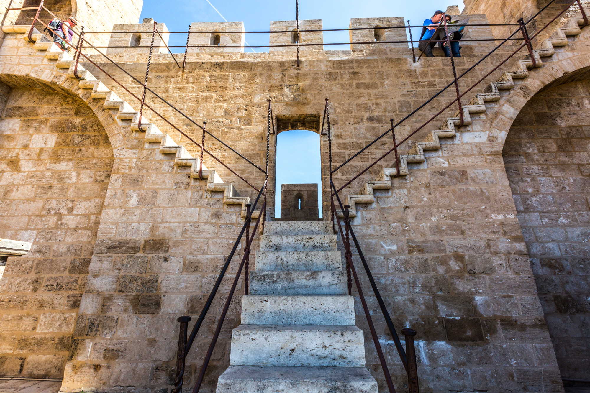 • Torres de Serranos is one of the former twelve gates to the city, this pair of towers dates back to the 14th-century. The towers were built as part of the medieval wall surrounding the city. Climb up the towers for an excellent view of Valencia!