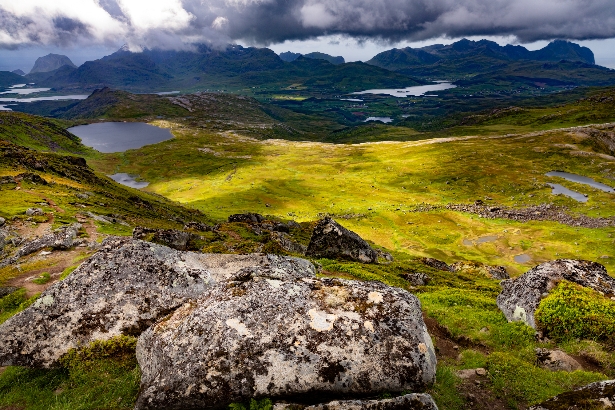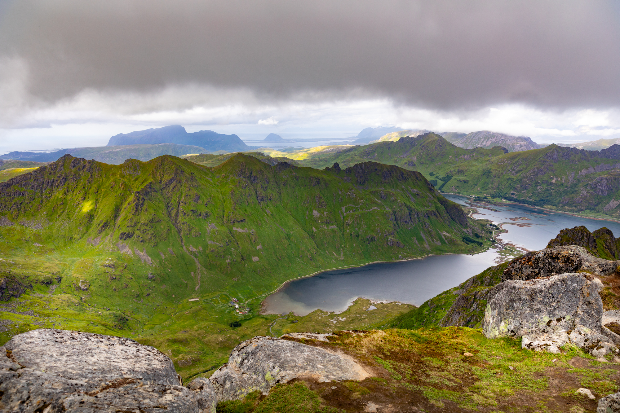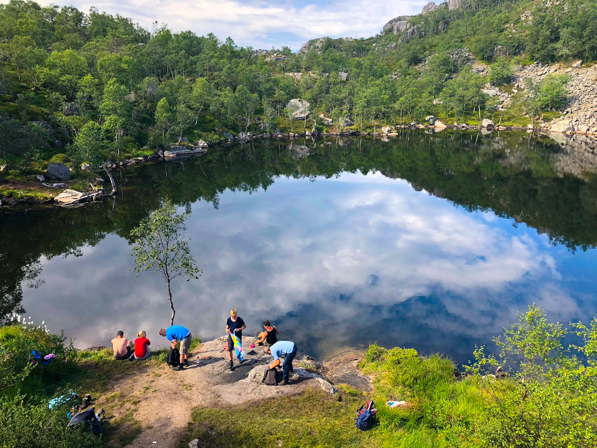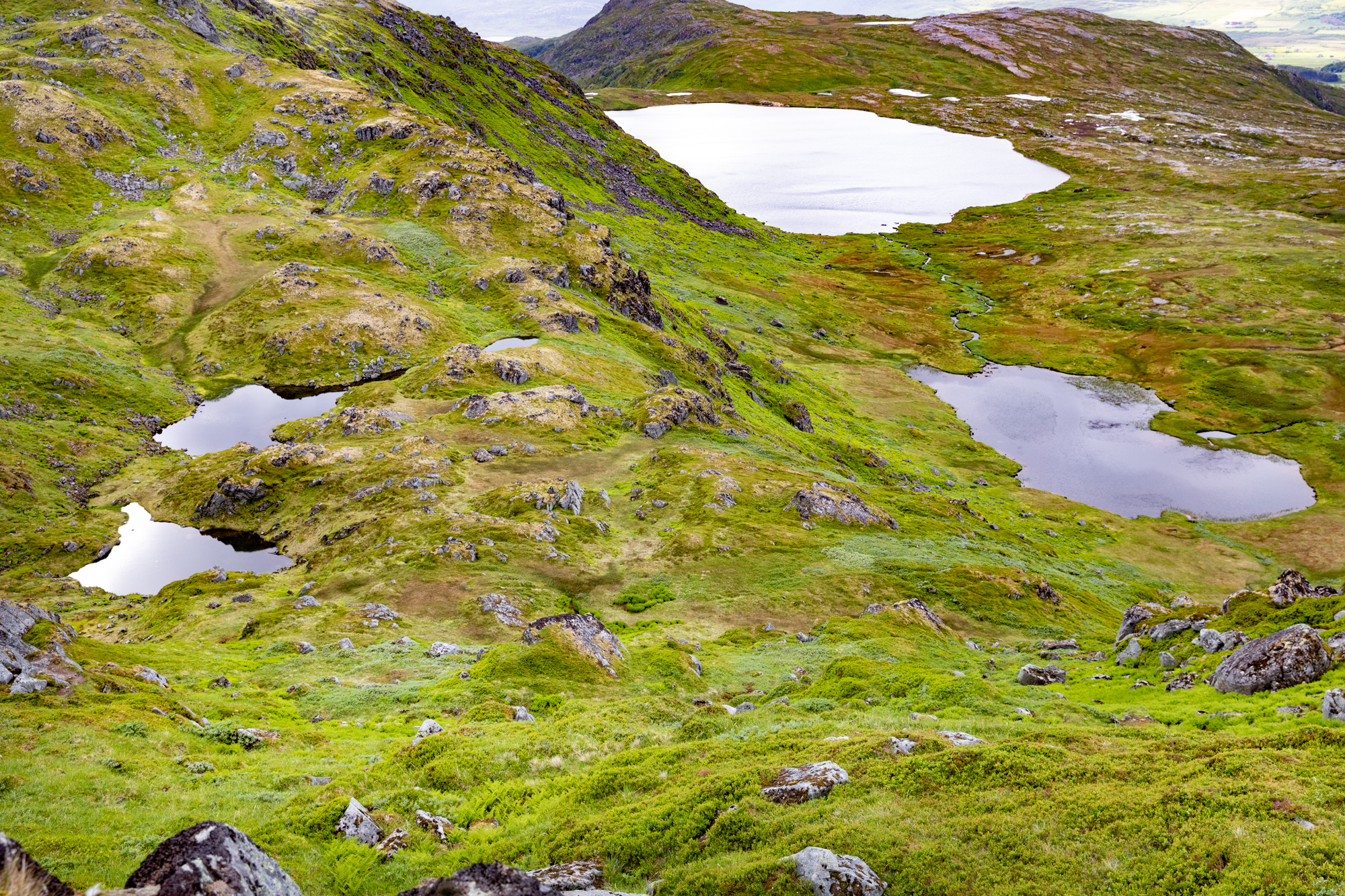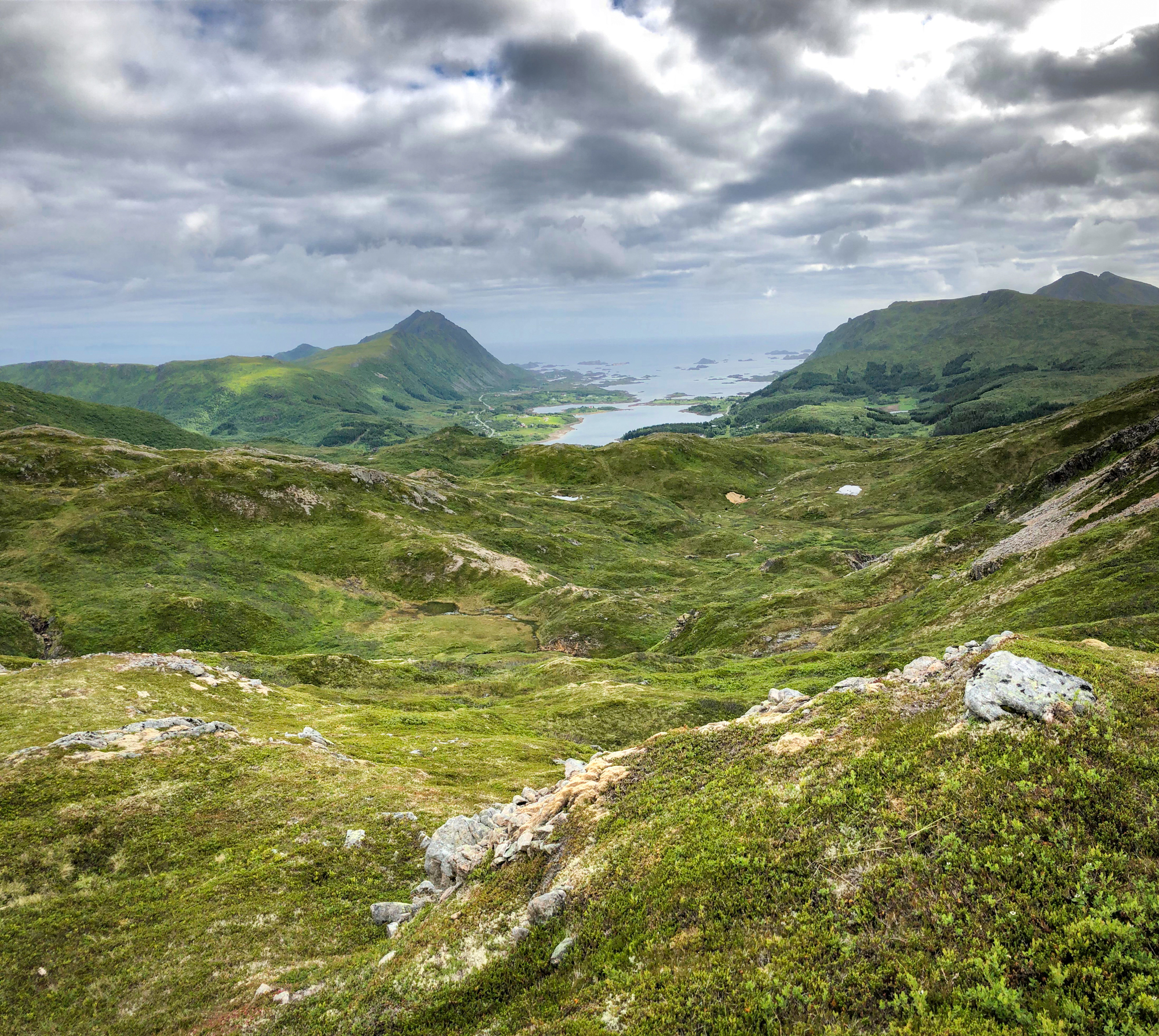 It was a rainy, windy day so we went on an easy hike up Glomtinden. Views of the surrounding lakes were spectacular. A plateau right before the final ascend to the summit offers the best views. Slippery rocks made the climb to the summit risky so we turned around from the plateau.