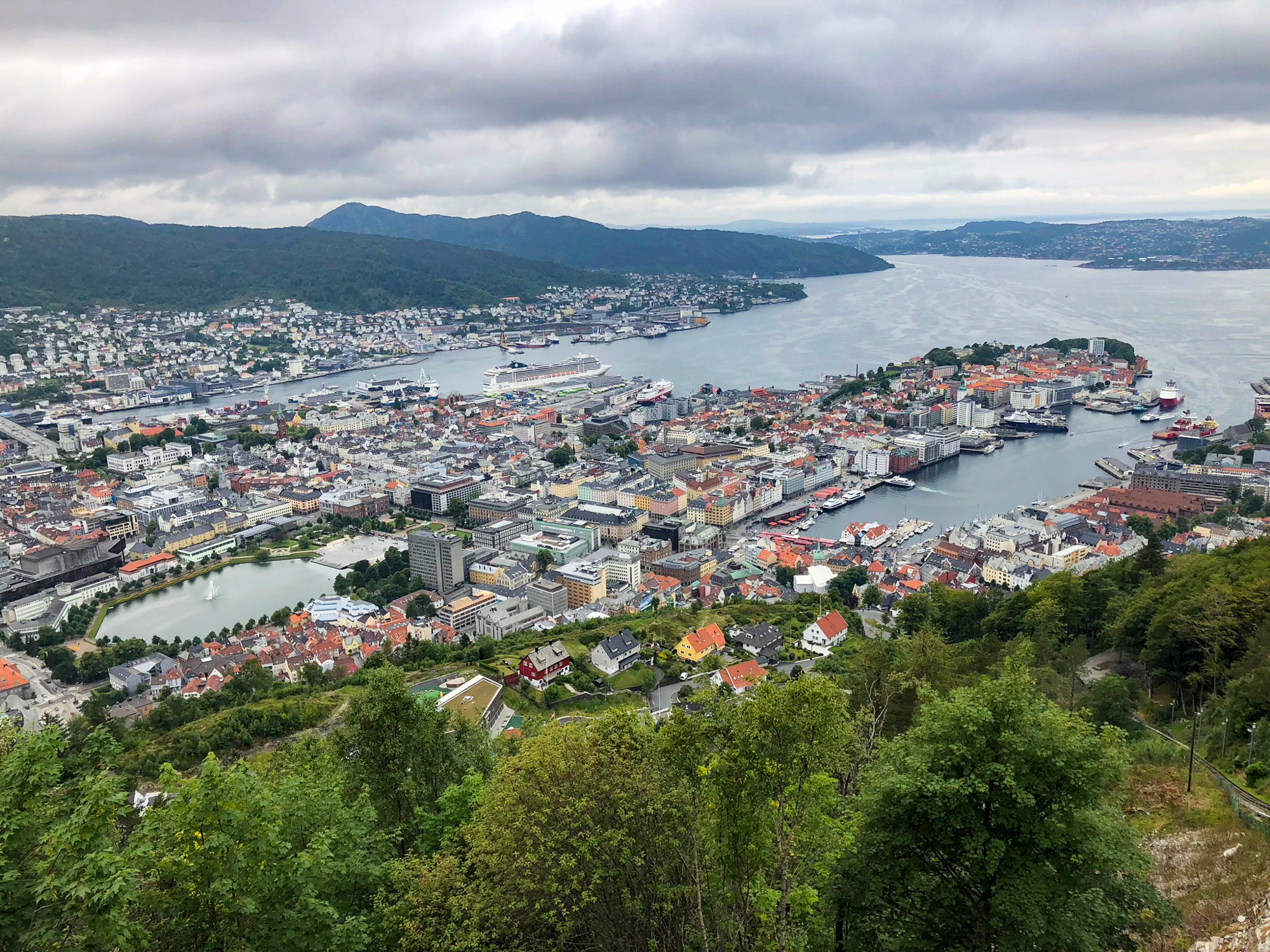 We spent few hours at the wharf in Bergen, took the Fløibanen funicular ride to Mount Fløyen, approx. 320 meters above sea level. From here you can enjoy the beautiful view, study the cityscape in detail and the seaward approaches and fjords surrounding Bergen. One of the cabins on top had pictures of goats and names assigned to each goat. One of the goats was called Obama. Everyone found that to be very funny.