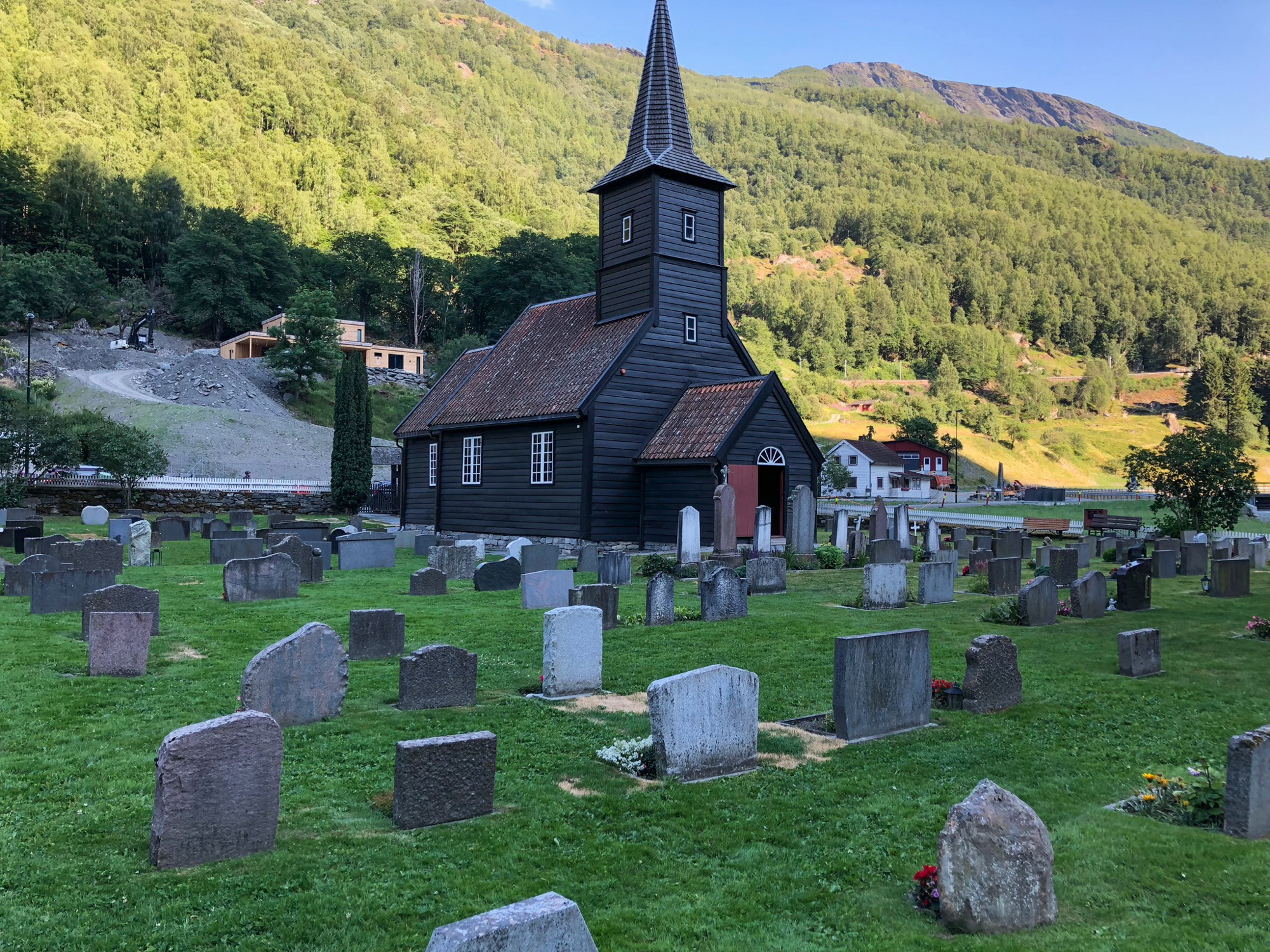 We drove from Tyssedal to Gudvangan. The drive was through the countryside, along the fjords. Saw several cherry farms on the way with little 'honor system' stands where you put money in a jar and pick up a box of cherries from the local farm.