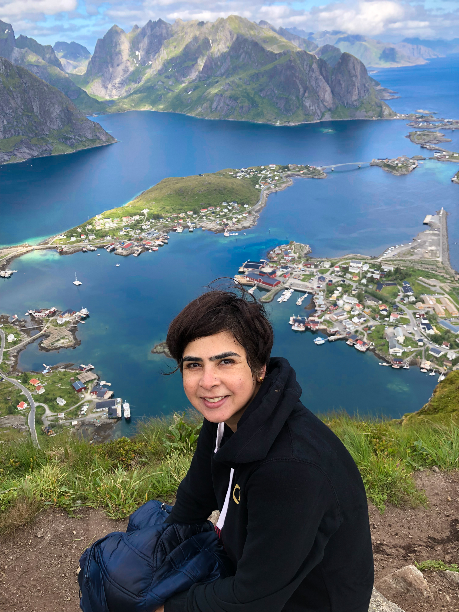 Panoramic views up top of Reinefjorden were breathtaking. Views of Lofoten Island and the village of Reine from top were totally worth it. We soaked ourselves in the beauty and fresh cool air and all the pain from the hike vanished.