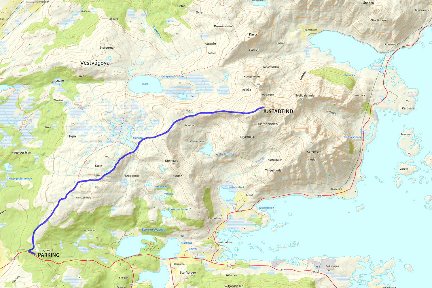- Hiked up Glomtinden. Driving from Svolvær, the small parking lot for the trail is at the end of lake Rørvikvatnet and can be easily missed. Drive slow and keep an eye out