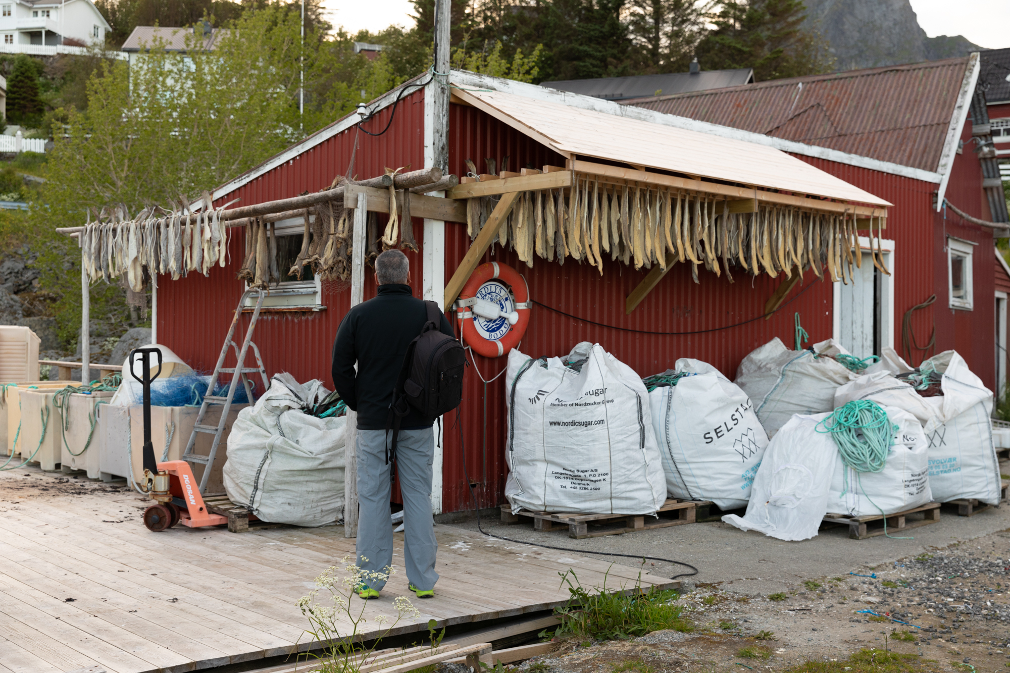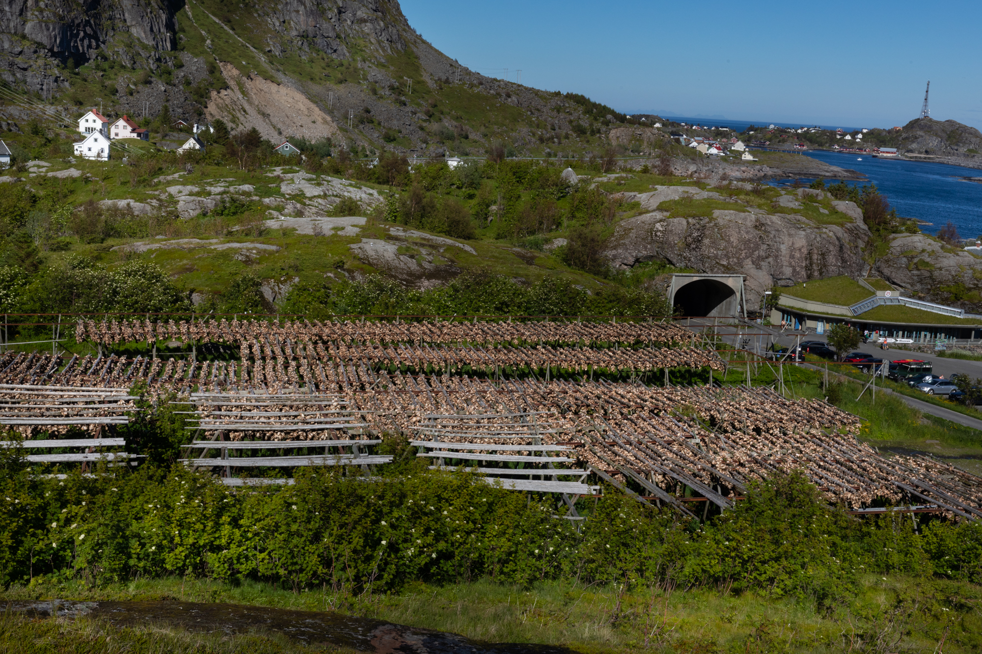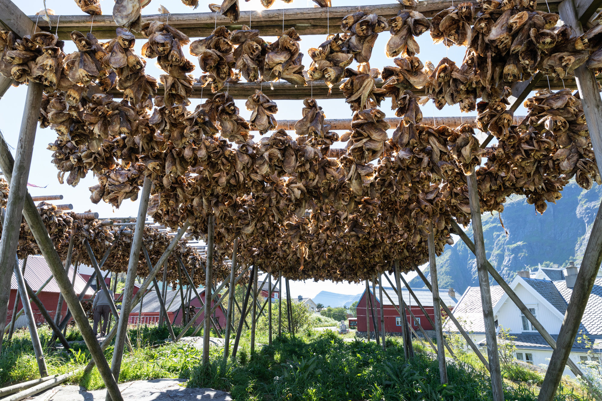 Two of the most distinct things about Reine are the Rorbuers (red and white fishing cabins) you see along the coast and dried fish farms.