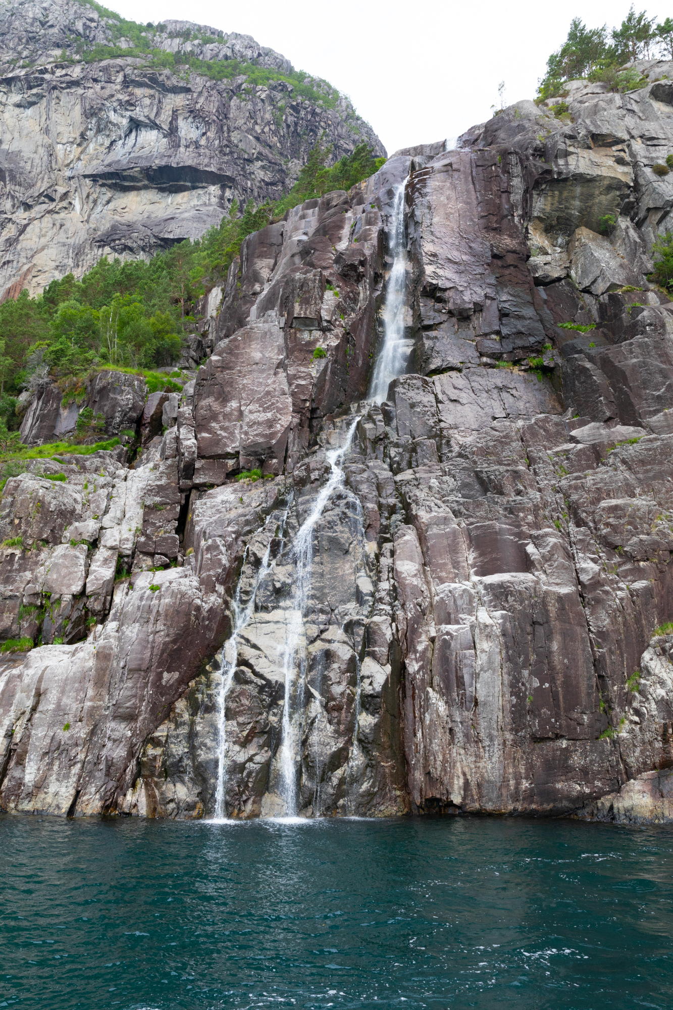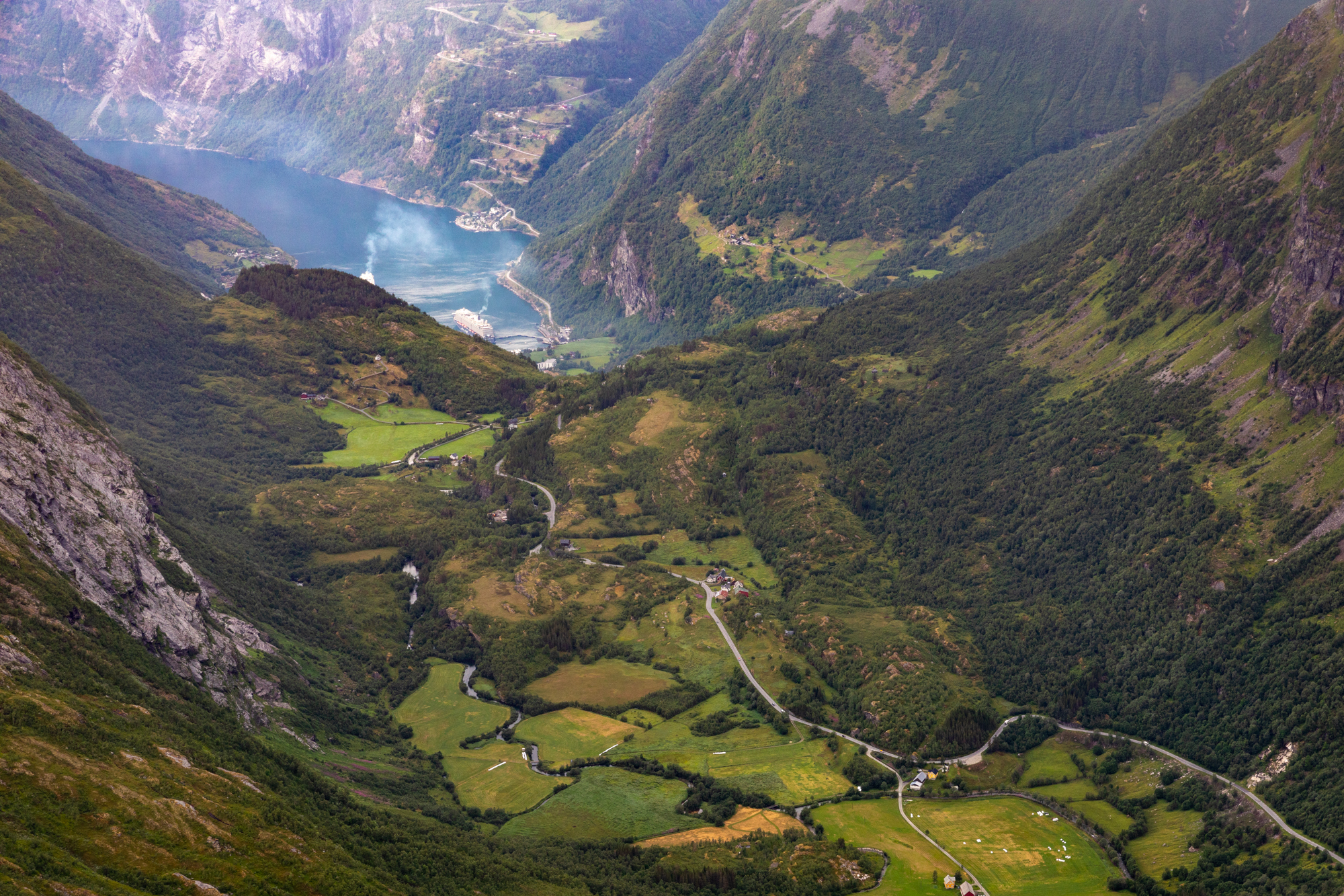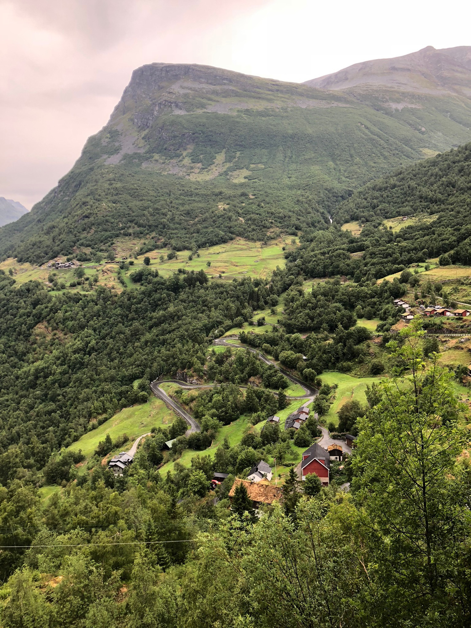 On our return trip we went up to Ørnevegen which is the name of the eleven hairpin bends that ascend the steep mountainside from Geiranger towards Eidsdal. At the top lies the Ørnesvingen viewing point, with its own waterfall. From here the view opens towards Geiranger, across the Geirangerfjord.