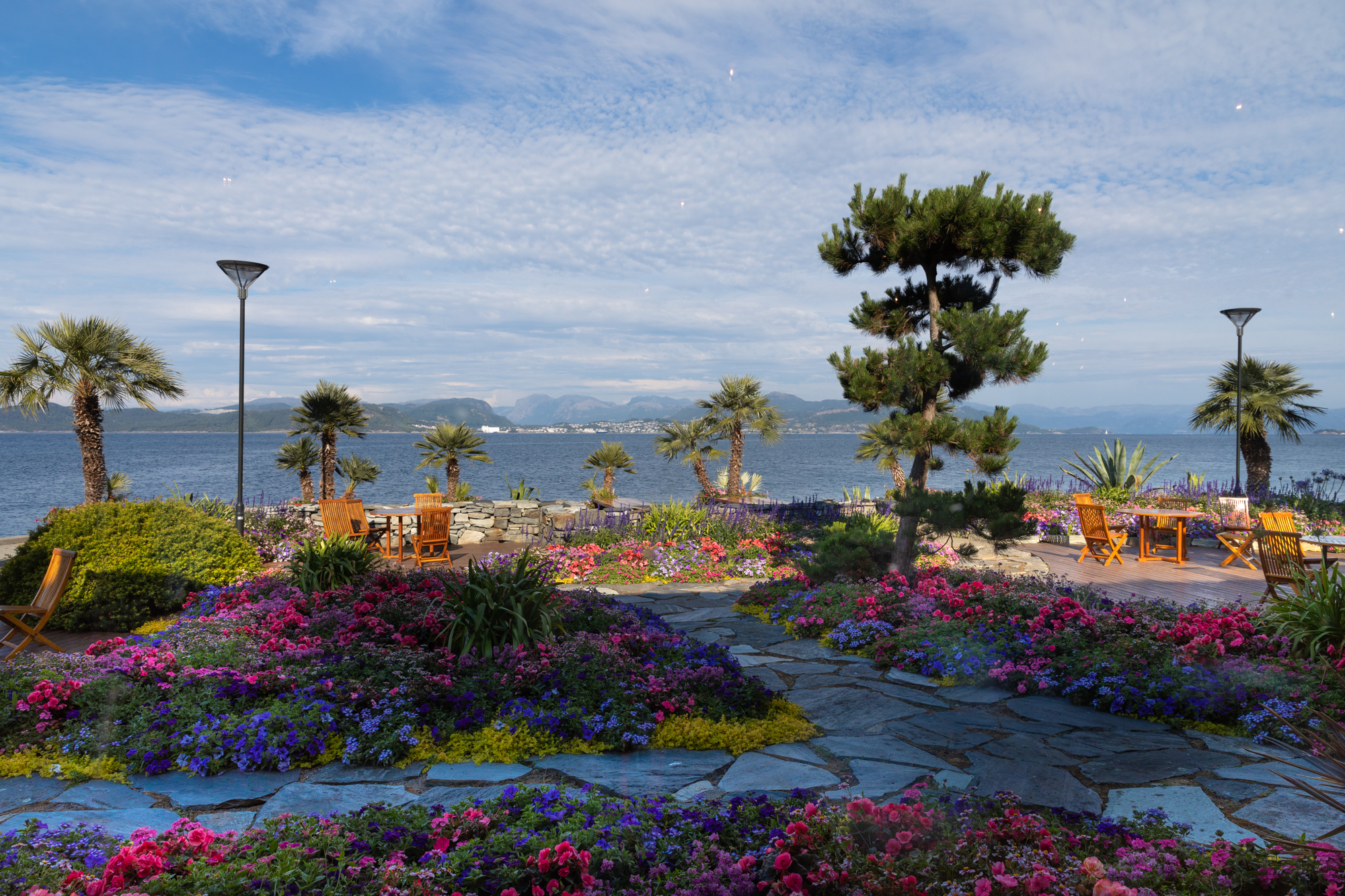 Spent the evening at the Flor & Fjære estate. A boat ride took us to the estate and we landed in this amazingly manicured sea of flowers and gardens. The estate is based on 12 acres of land and was started in 1965. It has 7 gardens inspired from different themes and is vert well maintained. It is like taking a walk in Chicago's botanic garden. Grass was trimmed by robot lawn mowers which I have never seen before.
