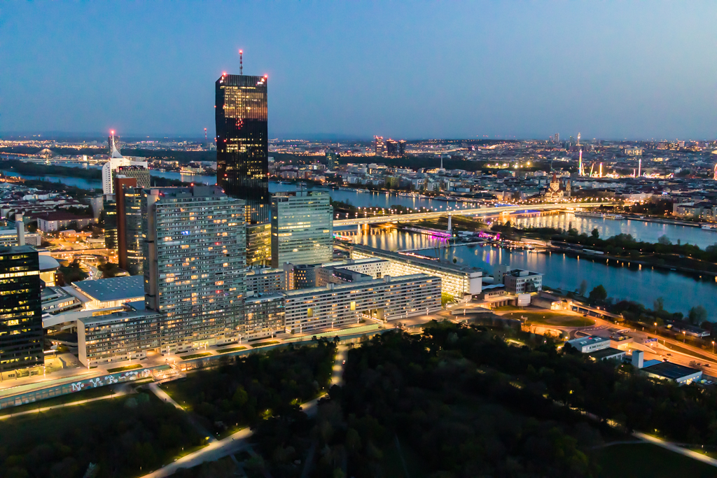 We then went to CopaBeach, a riverside recreation area with a sandy beach, bars & restaurants, a skate park & summer swimming. Walked around there for an hour and headed back to Danube Tower to enjoy sunset and blue hour views. Danube Tower is the highest landmark in Austria. Take the elevator to the viewing platform for panoramic views of the city.