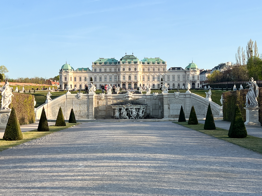We continued on to Belvedere Palace. We had no idea what to expect and certainly did not expect a palace right in the middle of the city. We were star struck when we arrived at the palace. The beautifully landscaped Belvedere gardens connect, the upper & lower Belvedere palaces and feature fountains, clipped hedges, flower beds.