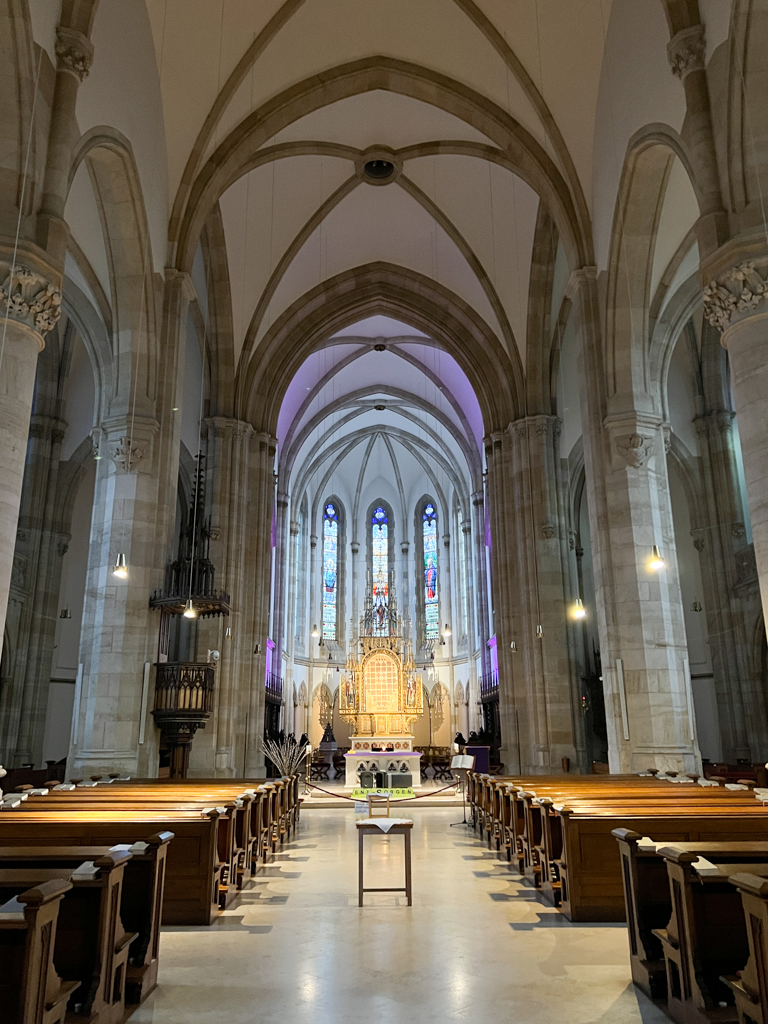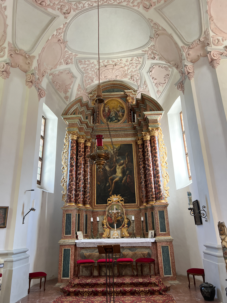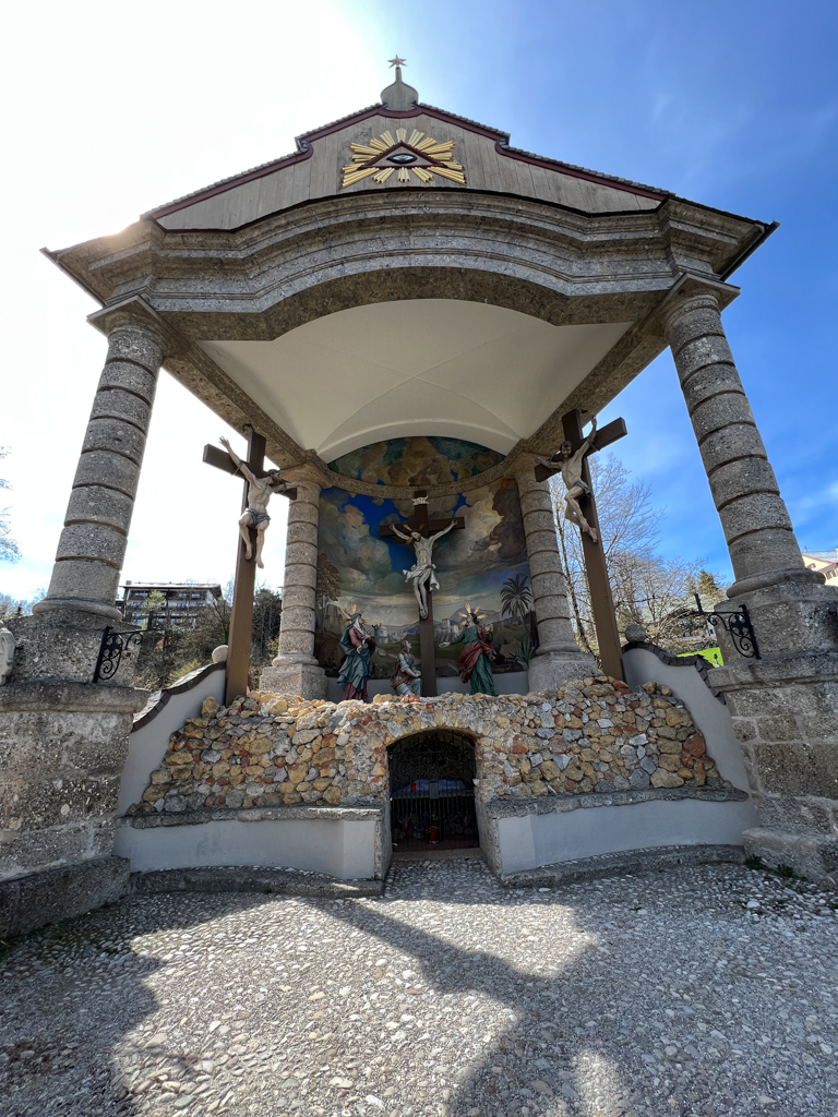 Lunch was burger, sweet potato fries and a large beer at Bayerische Küche. The fries were just too good and I finished the whole plate. My body just became too lethargic after that. But Chander had a plan (as always). He took me through these narrow lanes, nooks and corners, steep hike to a high point where we saw a the Kalvarienberg chapel