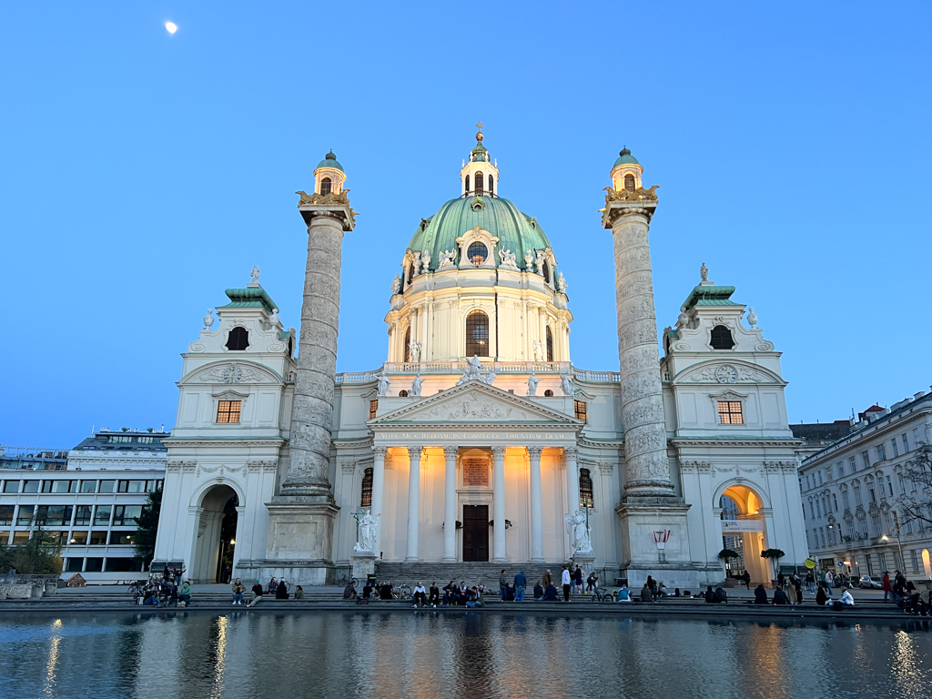 We spent the evening at Karlsplatz (Charles Square). The Karlskirche (‘St. Charles Church’), a Baroque church is located here. Depending on the time of day, you can see a beautiful reflection of the church in the pool. Karlzplatz station is located right around the corner from the church and so is Vienna University of Technology. Kalrsplatz is a popular spot during Christmas with the Art Advent Christmas Market is set up in front of the church. We found a really good eating place close-by called Gorilla Kitchen. I would highly recommend the burrito bowls here.