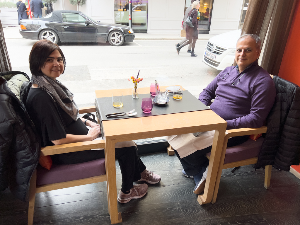 Trip from AMS to MUC via KLM was very smooth. We took the S-Bahn from Munich airport to Munich Hbf (40 minute ride), went to the ticketing office and purchased train ticket to Salzburg. Railjet offers the fastest trip to Salzburg. We were a little nervous about finding space for our big bags. Chander, being the strong person he is, was able to mount the big bags in the overhead space (I don’t think I could have done that)