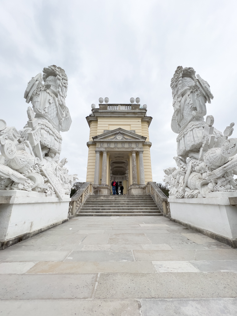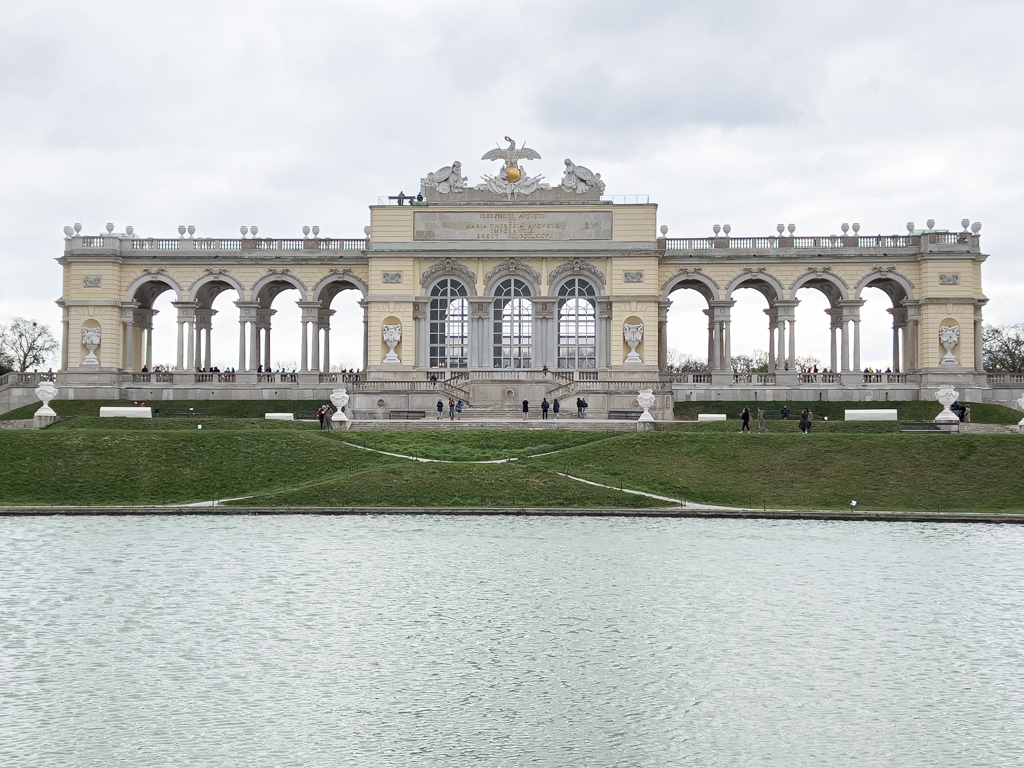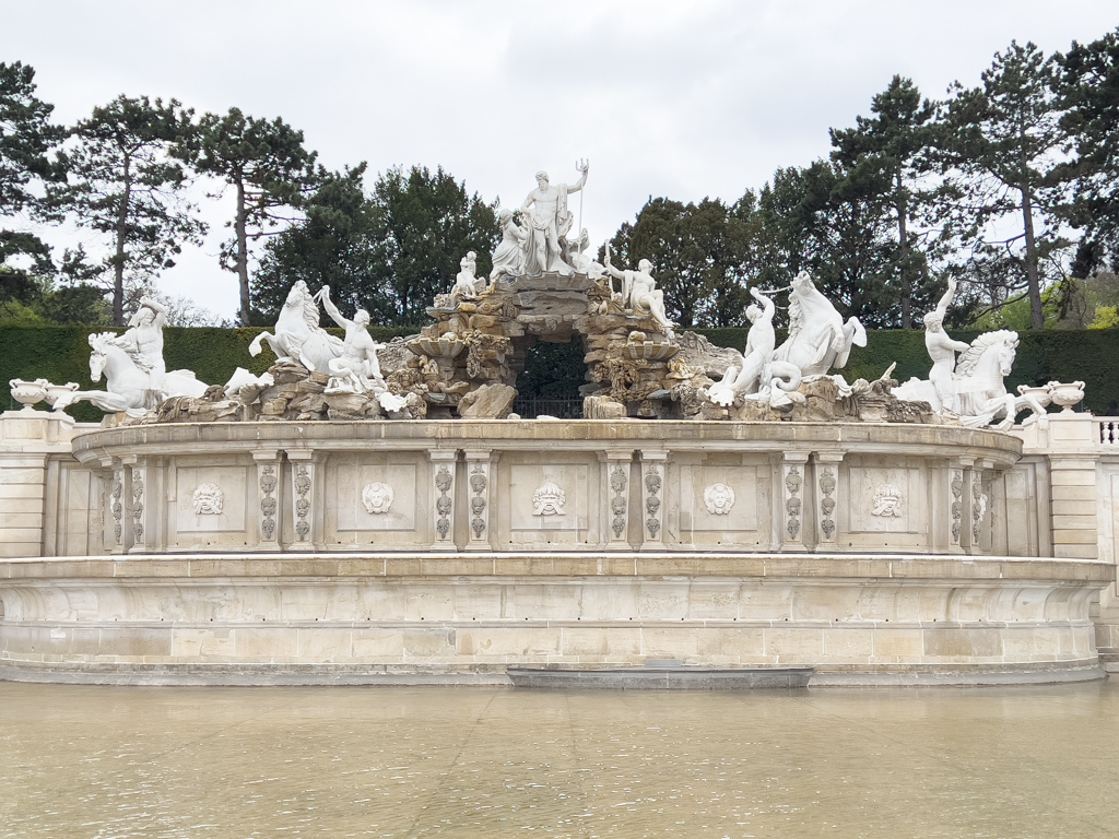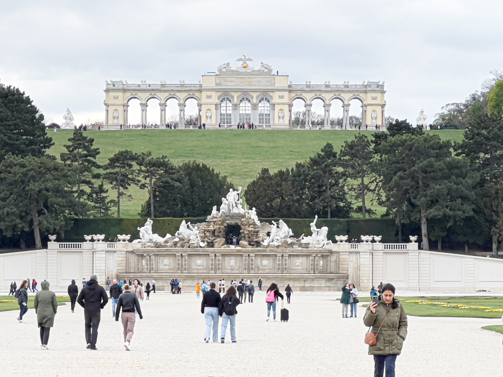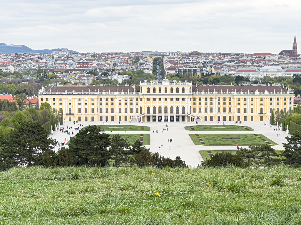 We took the train to Schönbrunn Palace. This was a similar jaw dropping experience as Belvedere. Schönbrunn Palace was the main summer residence of the Habsburg rulers. We walked through the sculpted garden space (Great Parterre) between the palace and the Neptune Fountain. There is also a French garden with a maze. On the hilltop is the Gloriette structure which was destroyed in WWII but has been restored. The Gloriette today houses a café and an observation deck which provides panoramic views of the city. We stopped by the cafe and had a nice cafe latte.
