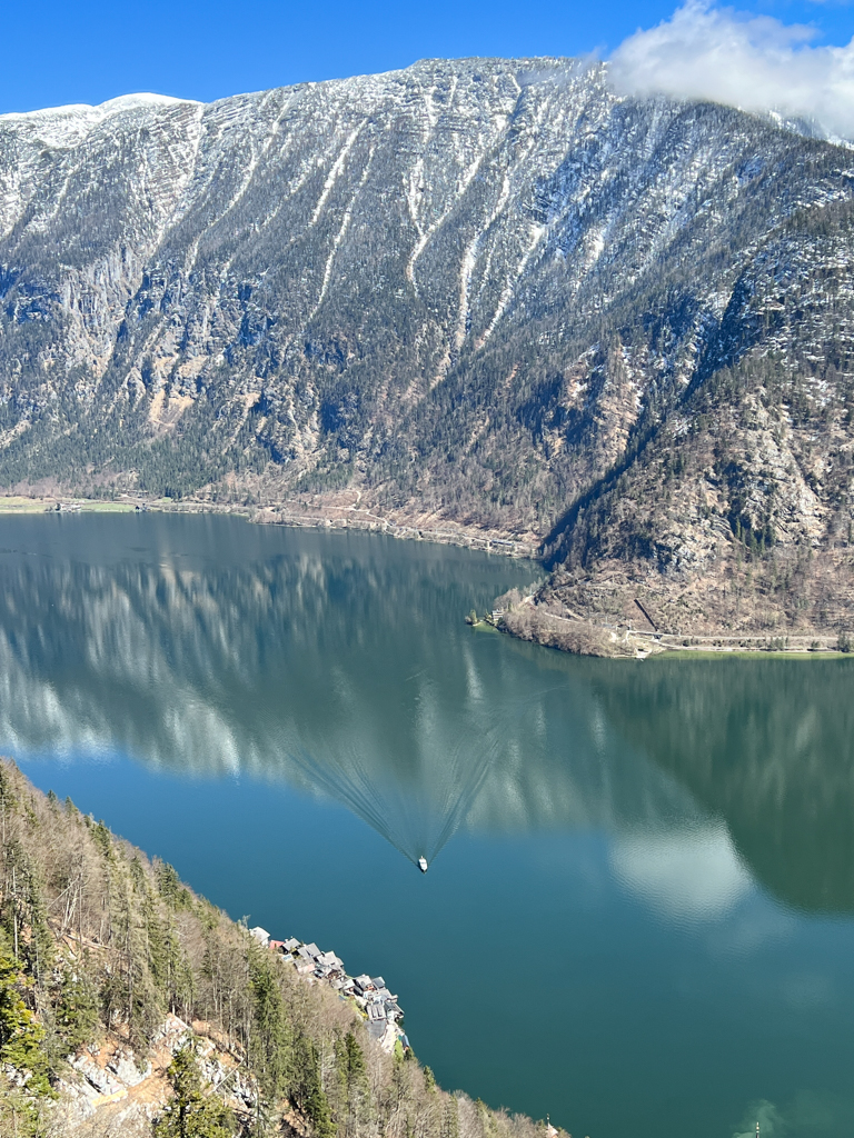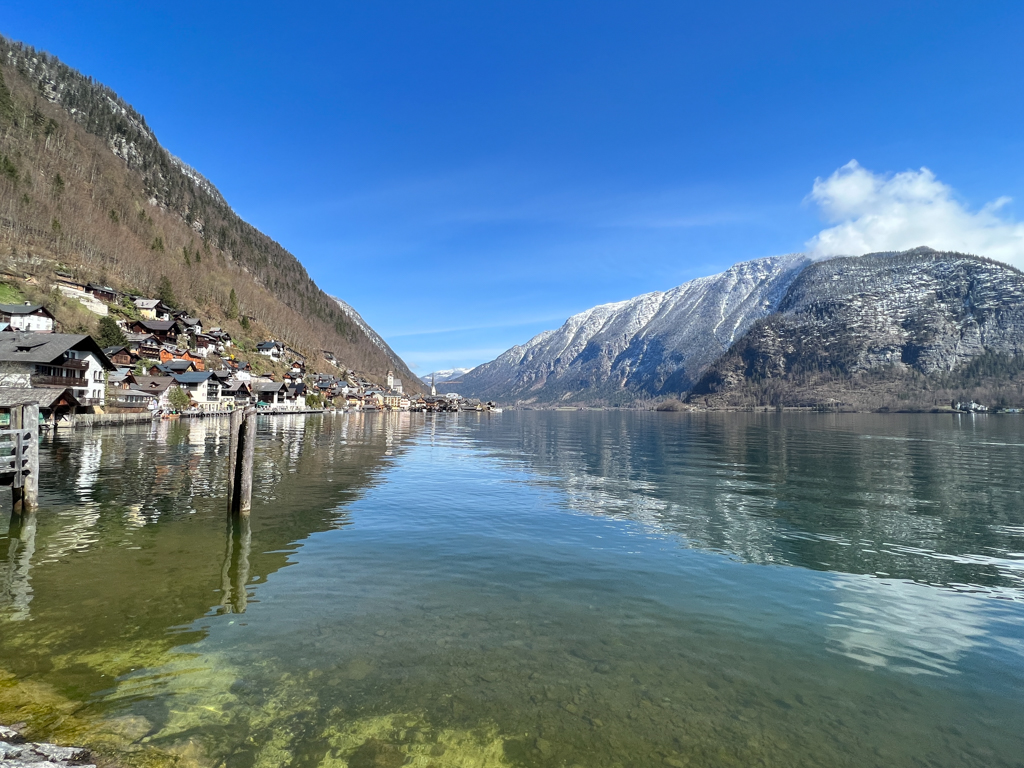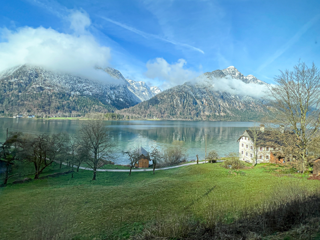 Salzburg to Attnang-Puchheim is a 50 min ride (reserved seating) and Attnang-Puchheim to Hallstat is 1.5 hour ride (open seating). Theres free wi-fi on the train but its best to keep your gadgets away and enjoy the countryside scenery on the train ride. The view of the town as the train approaches Hallstat is a sight not to be missed. The town is like a gem in the middle of snow covered mountains. Take a ferry from the train station to town.