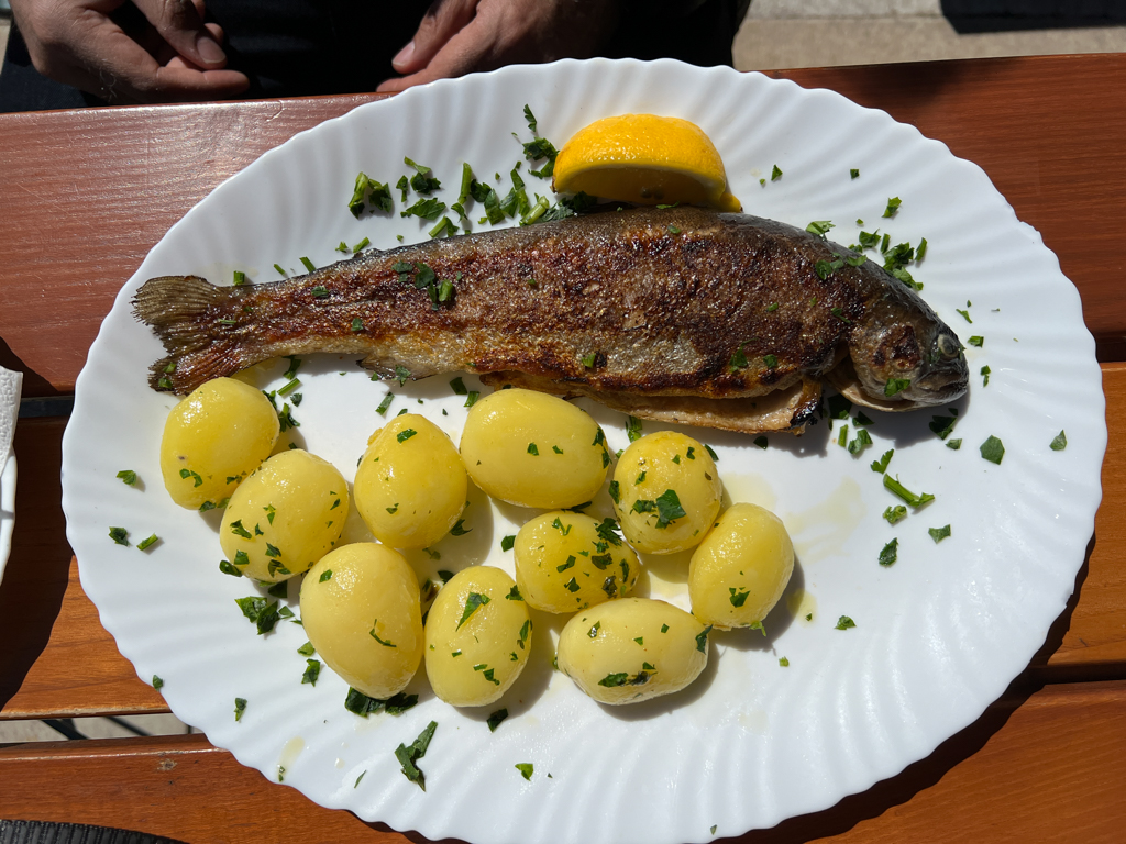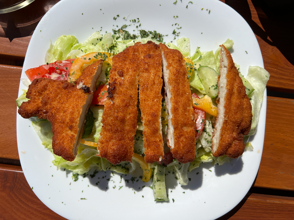 We actually took a little detour by getting off at the next stop Obertraun to visit Dachstein, a ski area but it was closed at that time of the year. So, we took a bus back to Hallstat (the bus frequency is not that great). We ate fish and crispy friend chicken salad at Schirmbar Hallstatt (I would not recommend it). We were lucky with our next eating stop. Simple169. We had a a delicious squash soup and flatbread.