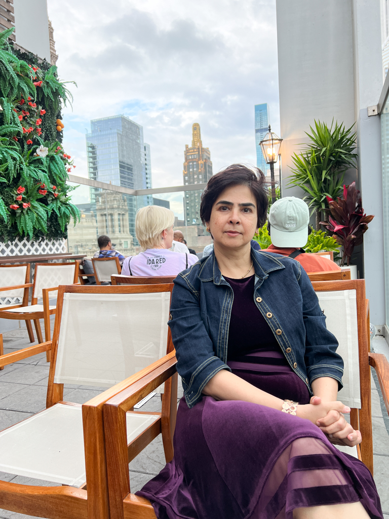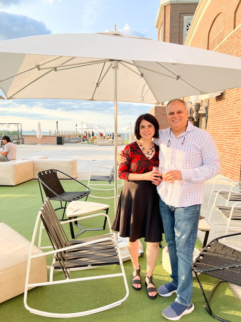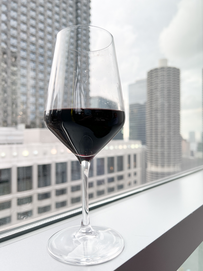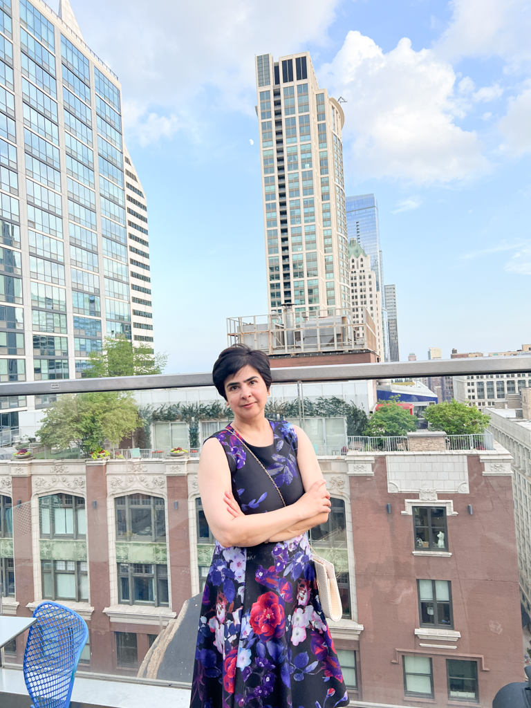 Our next stop was Cerise Rooftop located on the 26th floor of Virgin hotel at 203 N Wabash. This was a hot day. Temperature was 91F, felt like 101F, hot & humid. When we arrived on the 26th floor, we were hit by loud ear-deafening music. Chander and I both like quiet, so we looked at each other and we could read each other’s mind. We did not want to be here. The hostess offered to show us to our table. Chander was ready to turn around and leave but I convinced him to at least check out the table. Our table was outdoors and the music wasn’t as loud. So, we decided to sit there. There was a table reserved for us but a young woman had occupied the seat and refused to get up even though the hostess said the seat was reserved for us. We got another table which in my opinion was a better view.