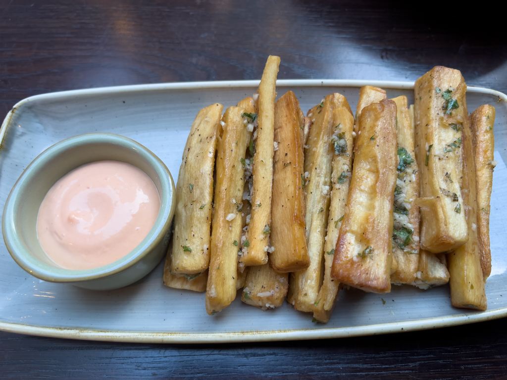 Chander ordered the Blackberry Smash cocktail which was like juice. He refused to drink. Ordered an old fashioned. I ordered a glass of Pinot Noir. They were out of it and replaced it with a wine of their choice without asking me. I was a little pissed at that. I don’t want anyone making my food / drink decisions for me.