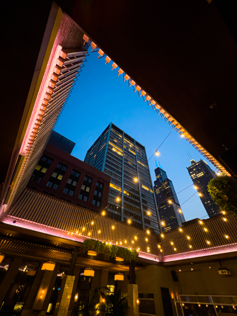 We had surprisingly good weather on this Friday. Pretty unusual for mid September. I wasn’t expecting us to continue our rooftop dining experience around this time of the year. Mother Nature & Food Gods’ were on our side. We good a seat a Boleo which is the rooftop restaurant  at the Kimpton Hotel located in the Loop. Weather was perfect. Our host gave us the ‘best seat in town’ with a beautiful view. Overall it was an enjoyable experience. We ordered our usual drink, the Old Fashion. They make it with Bourbon or Scotch. We ordered the one with Bourbon and Chander ordered another one with Scotch. It was really good. For food we ordered Chicken Empanada, Pork Belly Sliders, Scallop Ceviche, Yucca Fries and Chicken Skewers. Best item was the Pork Belly Sliders. Everything else can be skipped. We stayed until blue hour and got some nice night time photos.