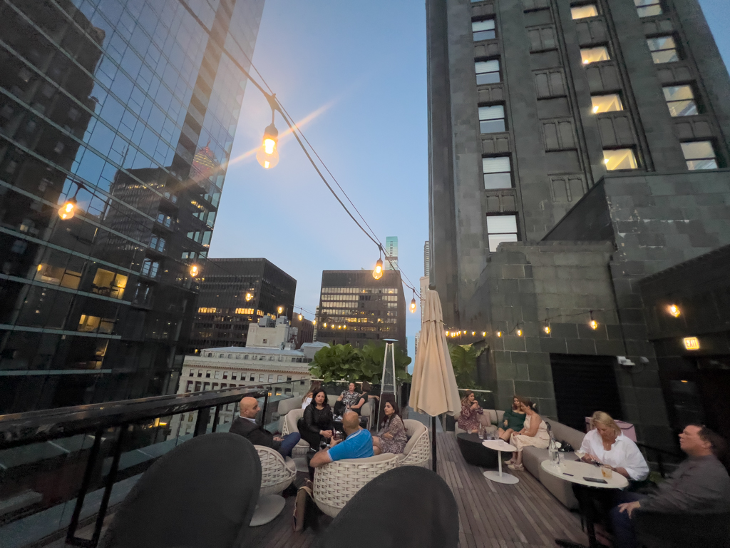 I am glad I did not cancel. We had a good time dining at the rooftop. The rooftop had several seating areas for groups of different sizes and most seating areas had fireplaces. We were seated at the long table with the fireplace.