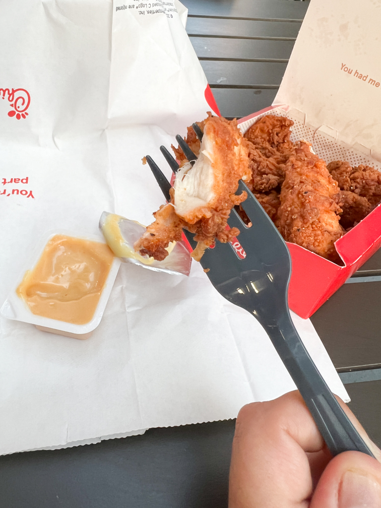 On our way home we stopped at Chik-fil-A and had the spicy chicken sandwich / tenders and then treated ourselves to Rocky Road and Jamoca Almond Fudge from Baskin Robbins.