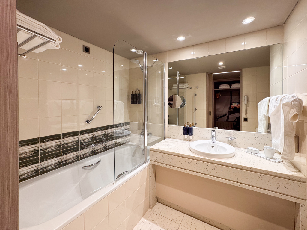 As a special welcome, they left a bottle of green grape wine and an assortment of homemade delicacies in our room—a thoughtful touch that set the tone for our stay. The luxurious details didn’t stop there. The bathroom featured heated floors, a delightful comfort during the cooler December evenings. And let’s talk about their stunning amenities!